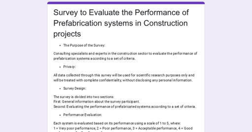 arrow-up16external-link📢 Open Survey: Evaluating the Performance of Prefabrication systems in Construction projectsplus-squaredocs.google.comArchTota@lemmy.worldEnglish · 3 months agomessage-square0fedilink