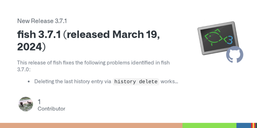 Mac@programming.dev · 2 years agoFish 3.7.1plus-squaregithub.comexternal-linkmessage-square0fedilinkarrow-up11