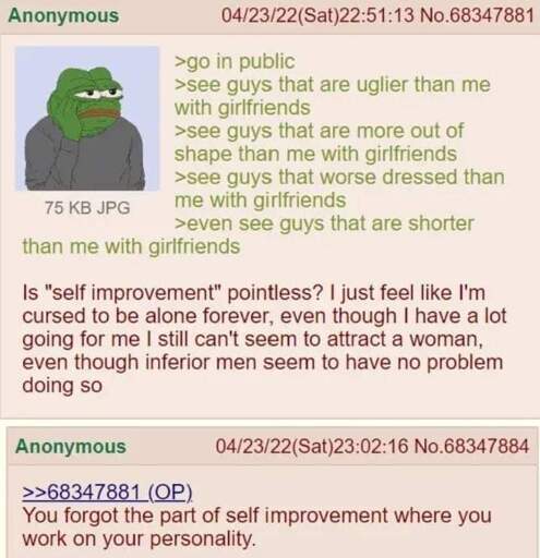 Track_Shovel@slrpnk.netEnglish · edit-21 year agoAnon discovers what self improvement meansslrpnk.netimagemessage-square47fedilinkarrow-up1909