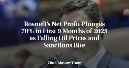 MrMakabar@slrpnk.netEnglish · 8 hours agoRosneft’s Net Profit Plunges 70% in First 9 Months of 2025 as Falling Oil Prices and Sanctions Bite - The Moscow Timesplus-squarewww.themoscowtimes.comexternal-linkmessage-square3fedilinkarrow-up140