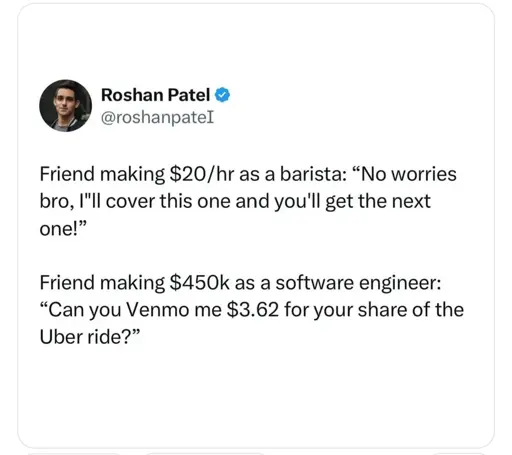 I mean, when i was broke money questions were a lot simpler because it was never “do I pick food, electricity or rent?”, it was “once I pay rent, do I eat ramen in the dark or do I go to bed hungry in the dark?”