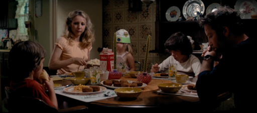 I also can’t tell what is in the bowls beside Roy and his sons - to the top left of Roy’s plate, right hand side of Toby and top right of Brad’s plate. Maybe Ronnie and Silvia have one of these bowls too but I can’t tell. You can see Brad eat out of his bowl at one point and it looks like something pale (I wondered coleslaw or macaroni).