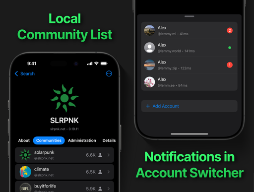 - The account quick switcher now includes unread notification counts, and can be configured to also show instance response times for each account (Settings → Accounts → Show Response Times)
