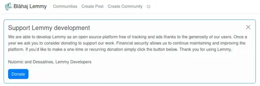 minus-squareAda@lemmy.blahaj.zoneMlinkfedilinkEnglisharrow-up32·6 months agoThere is, by forking lemmy and removing it. We already do that anyway, so we’ll look in to seeing what we can do. In the mean time, we offer a bunch of other frontends aside from the default lemmy UI, and they will all bypass this problem
