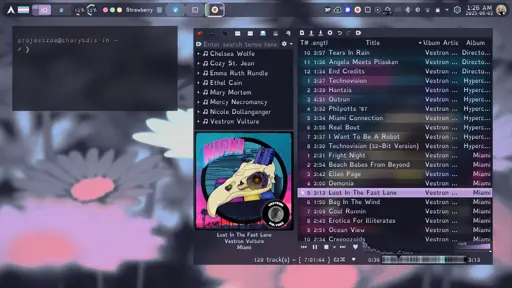i’ve barely done anything, i moved the menu and titlebars up to the top bar (the menu bar sits within the hamburger menu beside the app name) via kde widgets to make it cleaner, changed the sidebar layout by right clicking on one of the items, removed the album artist dividers, reduced the number of columns in the tracklist, enabled the moodbar, and changed the background image to show album art, upped the blur significantly, and turned off the option to not crop it. everything else is just QT settings