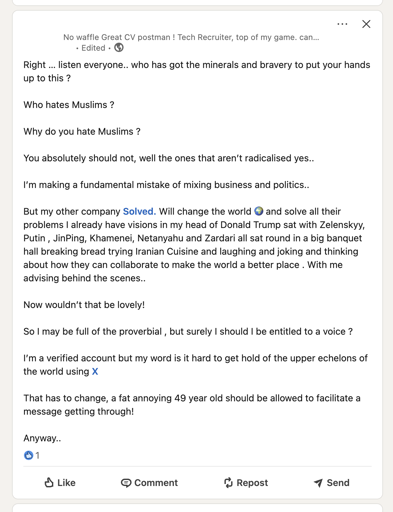 The story is Palestinians being genocided by Israel/US. Then Israel launch an unprovoked attack (just like they did for the past 80 years). And somehow Muslims/Islam are the problem lol