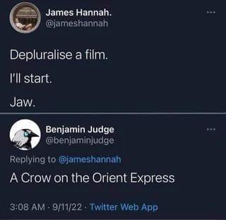 minus-squareMechanismatic@lemmy.worldlinkfedilinkEnglisharrow-up3·edit-23 months agoThe Addams Orphan A Single Fish of Rock Ocean’s Self A Plane, a Train, and an Automobile The Only Suspect