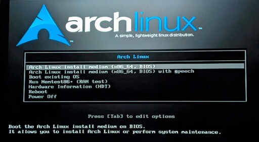My Linux mint pc just crashed because I was moving a lot of files from the home folder to the root directory. I got error that the drive is getting full. After clicking show error my pc rebooted and there was an error something like “can’t create user journal no space left” I’ve been running mint for 4 years now. But arch for 2 years on my laptop (hyprland) and main pc (kde). So for this pc I thought why not also arch. Put the install drive in and booted and got this fancy screen. I’ve never seen this screen so nice. Why is that, I always just saw the text.