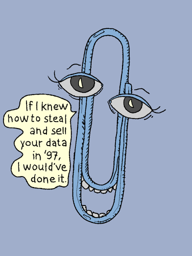 The point is that Clippy was widely considered to be bad, and everyone considered Microsoft to be bad at the time, but everything involving technology has become so much worse since. Microsoft would be considered the most ethical tech company in the world if they still operated the way they did in the 90s. It’s not the Microsoft was good in the 90s (far from it!) it’s that Microsoft and all of the other tech companies have gotten so much worse since then.