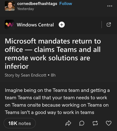 arrow-up11.08Kimage"Teams is inferior to in-office". My brother in Christ, you made the applicationlemmy.caTheWaterGod@lemmy.caM to Tech Support Memes@lemmy.caEnglish · 3 months agomessage-square86fedilink
