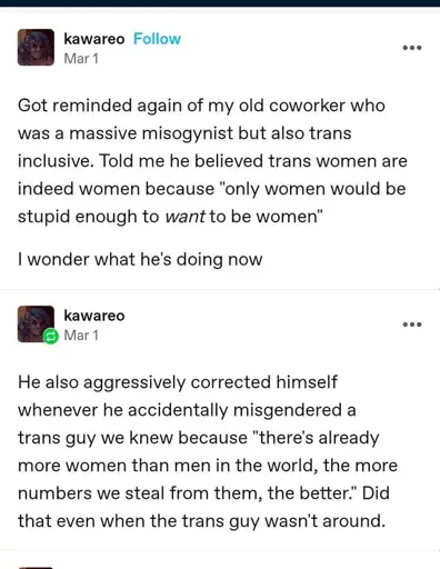 I love trans-inclusive radical misogyny. it’s so blursed. imagine if we had this instead of terfs.