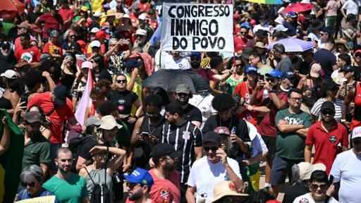 Brasília (AFP) – Thousands of Brazilians took to the streets Sunday in anger at moves by Congress to boost lawmakers’ immunity and push for amnesty that could include far-right former president Jair Bolsonaro, convicted of trying to stage a coup.