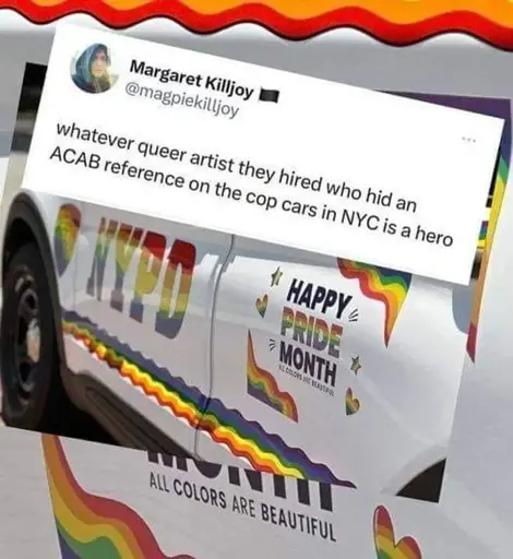 Actual fascist departments aren’t going to hire a queer person to make a queer police car, these where the ones most likely to be reformable.