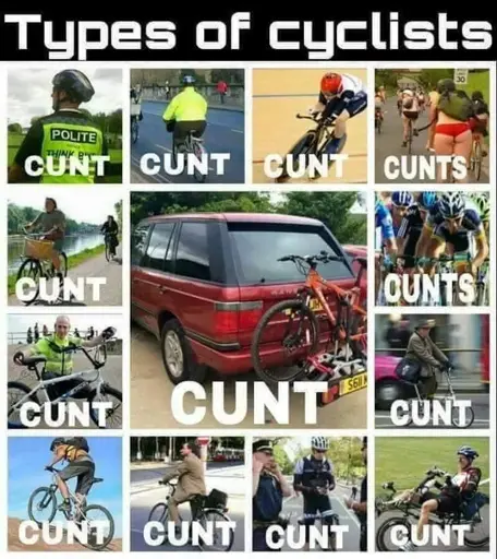 The funniest part about this is I’m constantly surrounded by cunts on my commute to work but none of them are on bikes.
