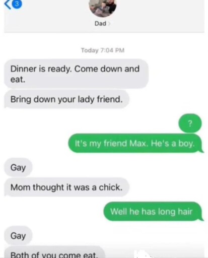 Absolutely. Though who knows. Maybe the son originally felt really uncomfortable coming out and shame around the word but the dad has no problem saying it, partially joking, partially to insist it’s not shameful and he accepts it. And loves him. Definitely isn’t the norm, just, like I said, needs more context to truly make an accurate judgement