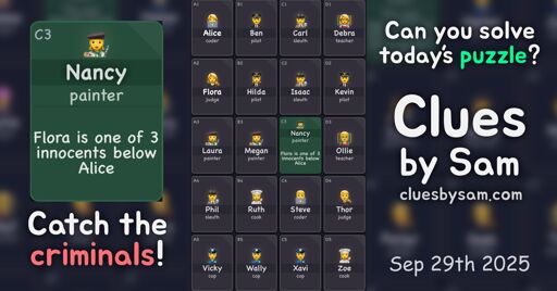 I solved the daily Clues by Sam (Sep 27th 2025) in less than 17 minutes