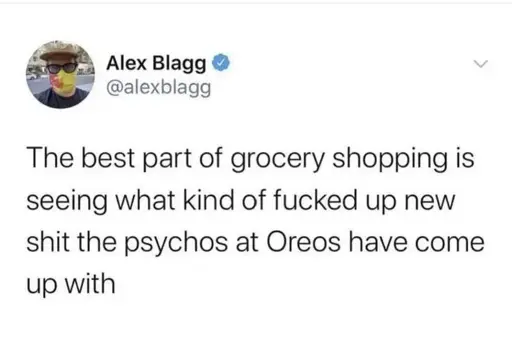 Regarding Oreos, yes they’re insane constantly coming out with new flavors & sponsorships & brand deals even though it’s all just fucking oreos, minus some noticable ounces & grams because of shrinkflation.