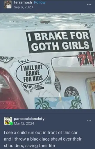 tgirlschierke@lemmy.blahaj.zone to 196@lemmy.blahaj.zoneEnglish · 12 days agoGoth Giruleslemmy.blahaj.zoneimagemessage-square5fedilinkarrow-up1448