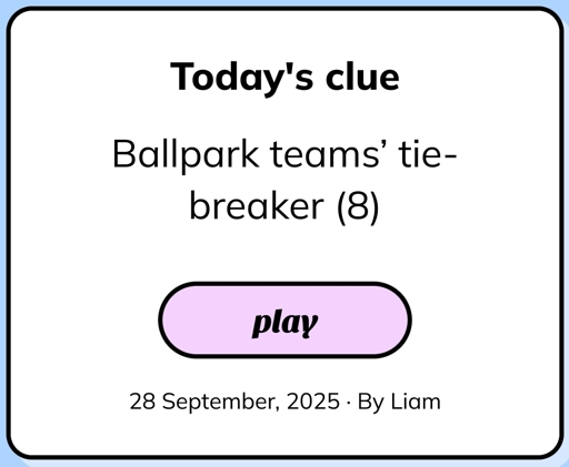 Every cryptic clue has a word or string of words at the beginning or end (but never in the middle) of the clue that acts like a regular crossword clue. So, in the case of this clue we know from the start that we’re looking for an 8-letter word that either means “ballpark”, “ballpark teams”, “tie-breaker” or possibly even just “breaker” (punctuation can often be disregarded). This part of the clue is ALWAYS unrelated to the ‘wordplay’ part of the clue: