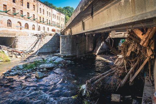 Zaniedbane rzeki, a wokół nich masa drewna, które zostawiają firmy wycinajace lasy - a potem wezbrana rzeka to wszystko zbiera.