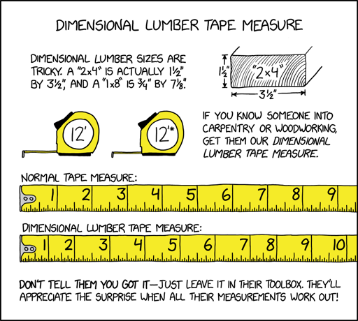 So having to measure the lumber to acquire its actual dimensions is entire above-board [pun intended] for anything beyond putting together a wood-frame structure.