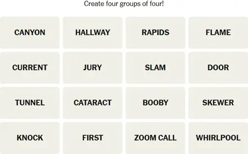 Purple jumped out right away and green seemed pretty straightforward, but the one weird yellow one threw me off. Blue I thought was like “long narrow places” but that was wrong, but then I thought maybe places being kind of boxed in would have something to do with it, and turns out that was close enough.
