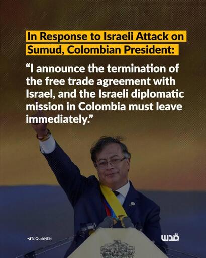 Colombian President Gustavo Petro announces concrete steps in response to Israel’s attack on Global Sumud Flotilla vessels.
