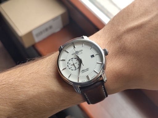Zeppelin Atlantic Automatic. Might be a bit big for my wrist, but I love it. This is my first automatic, and knowing some of the prices hopefully my last too lol.