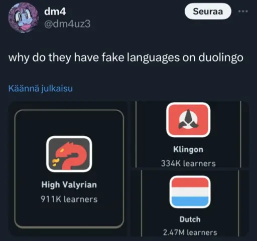 i will accept this argument for high valyrian and klingon… but dutch, rlly?