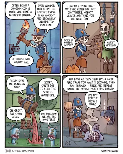 Stamets@lemmy.dbzer0.com to RPGMemes @ttrpg.network · 20 days ago[PastIllustrator] Dungeon Cop - Job Satisfactionlemmy.dbzer0.comimagemessage-square15fedilinkarrow-up1406