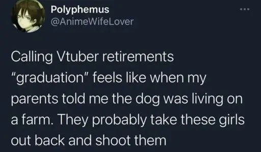 tgirlschierke@lemmy.blahaj.zone to Animemes@ani.socialEnglish · 11 days agoVTuber Graduationlemmy.blahaj.zoneimagemessage-square50fedilinkarrow-up1472