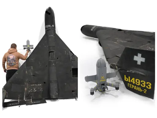 As you can see, completely different weight categories, but thanks to this our interceptor drone defeats much larger opponents.