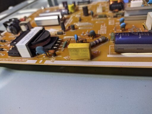 so step 1, look for obviously busted caps and burned out shit and this post is to that end. if that fails, I’m on to step 2, determine if this can be repaired at all; like, if it’s the panel, give up right there. maybe learn something for the next one. and on and on.