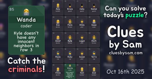 Clues by Sam - Oct 15th 2025 05:37 🟩🟩🟩🟩 🟩🟩🟩🟩 🟩🟩🟩🟩 🟩🟩🟩🟩 🟩🟩🟩🟩