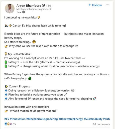 Perpetual motion machine aside, where tf is bro going that the range of an ebike isn’t enough, but the speed is