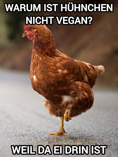 Sogar das Huhn macht bei dem Flachwitz schon die Füße hoch.