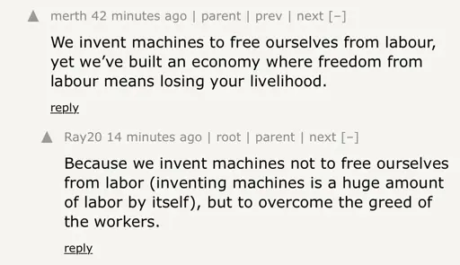 I don’t think the commenter is saying that as their own opinion, but as the real reason capitalists are developing automation.