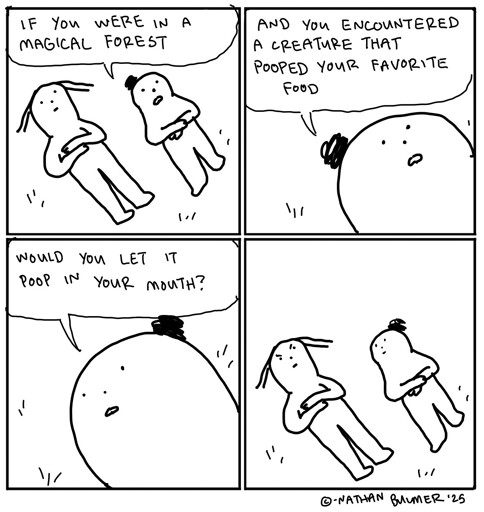Samdell@lemmy.eco.br to Comics@lemmy.blahaj.zone · 10 days agoIf you were in a magical forest (Nathan Bulmer)cdn.imgchest.comimagemessage-square27fedilinkarrow-up1261file-text