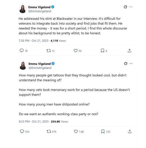 minus-squarechgxvjh [he/him, comrade/them]@hexbear.netlinkfedilinkEnglisharrow-up13·edit-217 hours agoIsn’t that exactly what he was doing on Pod Save America? I haven’t listened to it myself but that what it looks like based on how it’s reported on today and yesterday. https://www.theguardian.com/us-news/2025/oct/21/maine-graham-platner-tattoo-democrat-senate