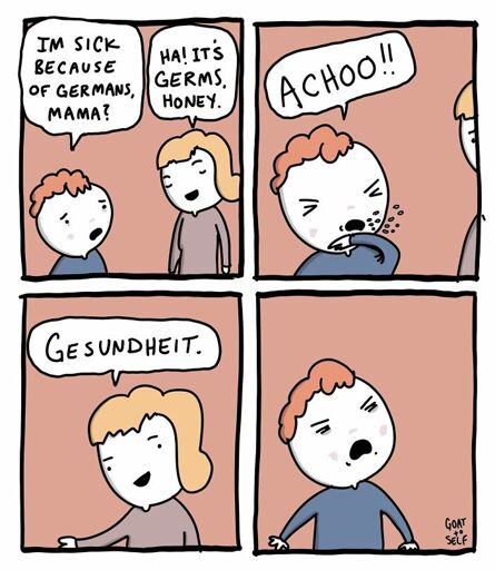 Ich weiß noch als meine Oma geheult hatte als sie Werbung im Fernsehen in der USA falsch verstand. Sie verstand “Lysol kills Germans.”