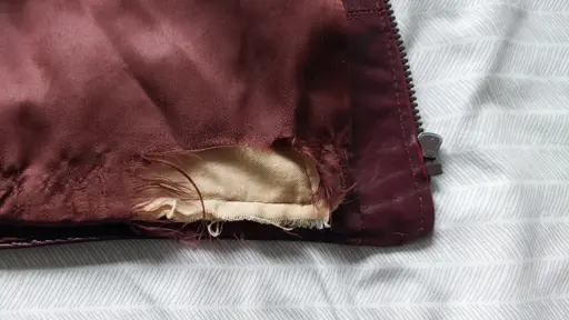 I recently purchased a second-hand leather jacket, and the lining has significant holes in it where the pockets are. This is because the pockets extend about 2cm further down then the lining would allow.