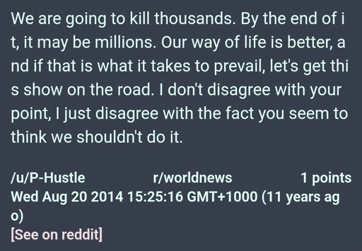 You think someone who about 10 years ago was blase about killing around a million muslims deserves to be in your government? After your party elected Fetterman? Literally fuck off with this. It must be easy for people like you to think this because he didn’t say that about your family. That is quite literally my family he is talking about. I knew America and Americans were evil but holy fuck you just reinforced this for me. Nobody in my government has ever said that it would be ok to kill a million people, that is insane.