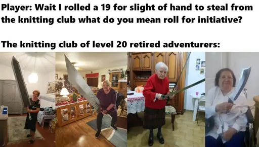 Stamets@lemmy.dbzer0.com to RPGMemes @ttrpg.network · 4 days agoUnweave the tapestry of your life, motherfuckerlemmy.dbzer0.comimagemessage-square10fedilinkarrow-up1362