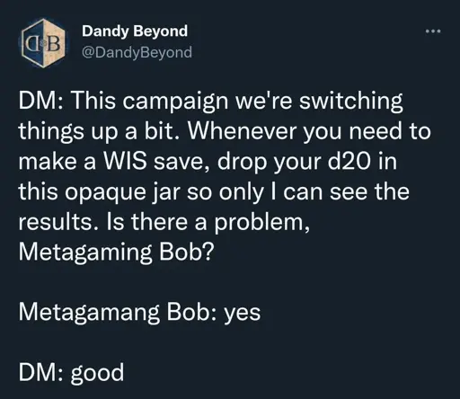 I have a feeling that people who spend their time posting memes about shitty relations between players and DMs probably aren’t actually playing that much.