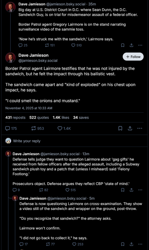 ProgAimerGirl [she/her, comrade/them]@hexbear.net to Chapotraphouse@hexbear.netEnglish · 11 hours agoSandwich Guy is on trial today and it's the best bit you've seen all weekhexbear.netimagemessage-square34fedilinkarrow-up1147file-text