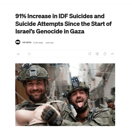 [CW: Suicide] 91% Increase in IDF Suicides and Suicide Attempts Since the Start of Israel’s Genocide in Gaza