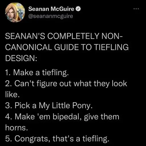 Stamets@lemmy.dbzer0.com to RPGMemes @ttrpg.network · 1 month agoGuide to Tiefling Designlemmy.dbzer0.comimagemessage-square19fedilinkarrow-up1330