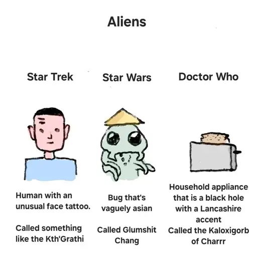 minus-squareDarkCloud@lemmy.worldlinkfedilinkarrow-up9·2 days agoThat last one is more a mix of Hitch Hiker’s Guide and Red Dwarf.