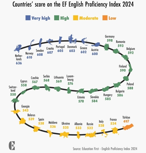 The EF EPI 2024 edition was calculated using test data from 2.1 million test takers in 2023. The test takers were self-selected.