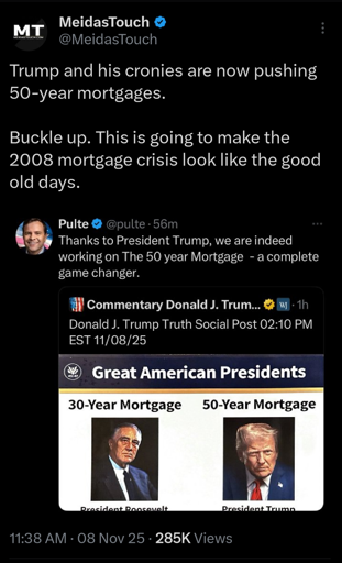 vegeta1 [he/him]@hexbear.net to Chapotraphouse@hexbear.netEnglish · 6 days ago50 year mortgages the American dream now?hexbear.netimagemessage-square32fedilinkarrow-up1121